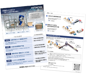 段ボールの開封作業の自動化を実現する天面カットロボットの資料です。導入事例や製品詳細が記載されています。